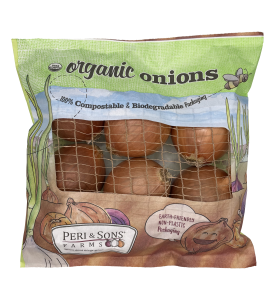 Yellow Onion ‘Earthbag’ from Peri & Sons: The name says it all. Earthbags are made from paper/bamboo mesh and are 100% biodegradable and compostable! Each unit has 16 sharp looking 3-Pound bags.
